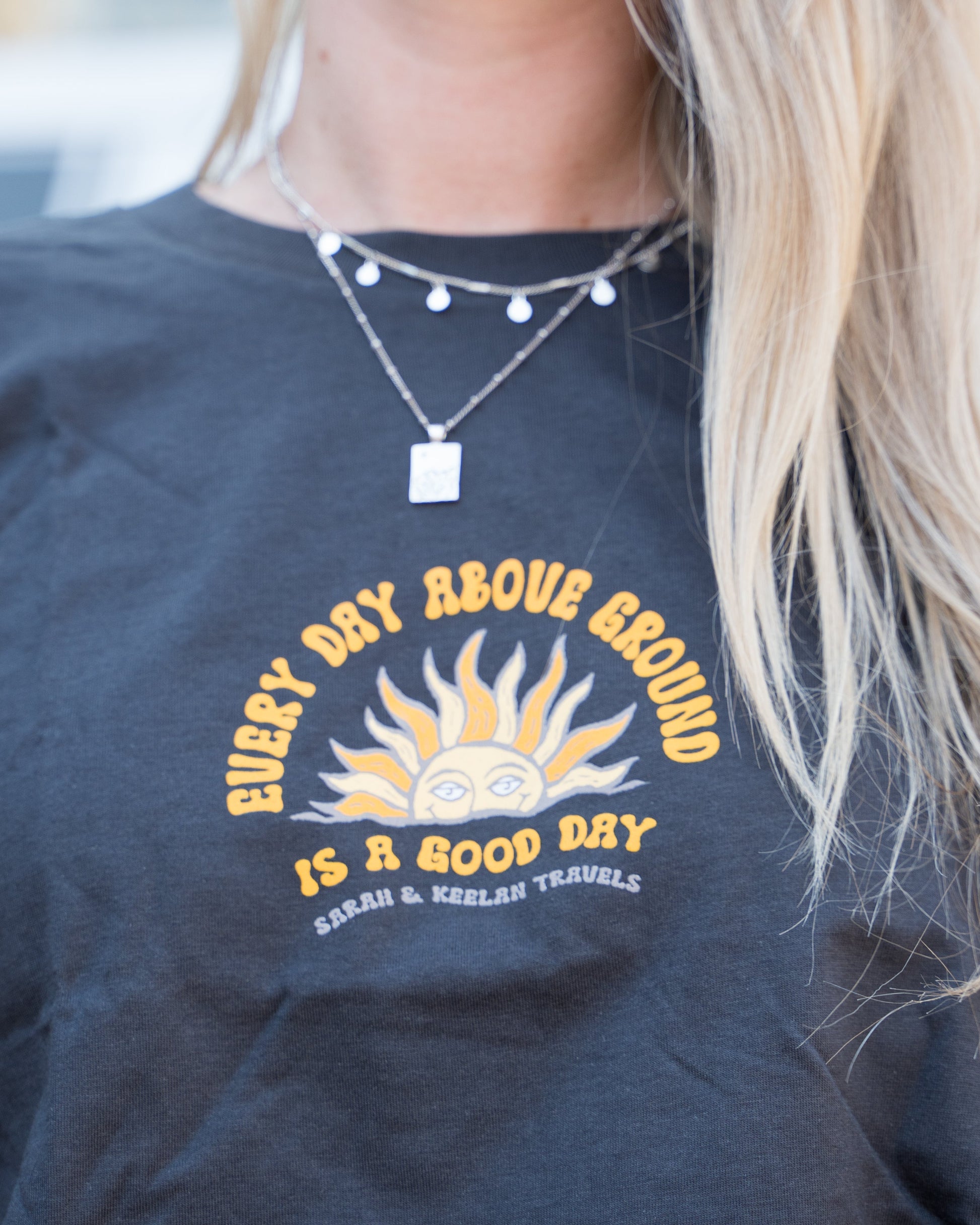 The SKT Sun Shirt is designed around the motto that every day above ground is a good day! ❤️ One of the reasons we decided to quit our 9-5 & travel around Australia!